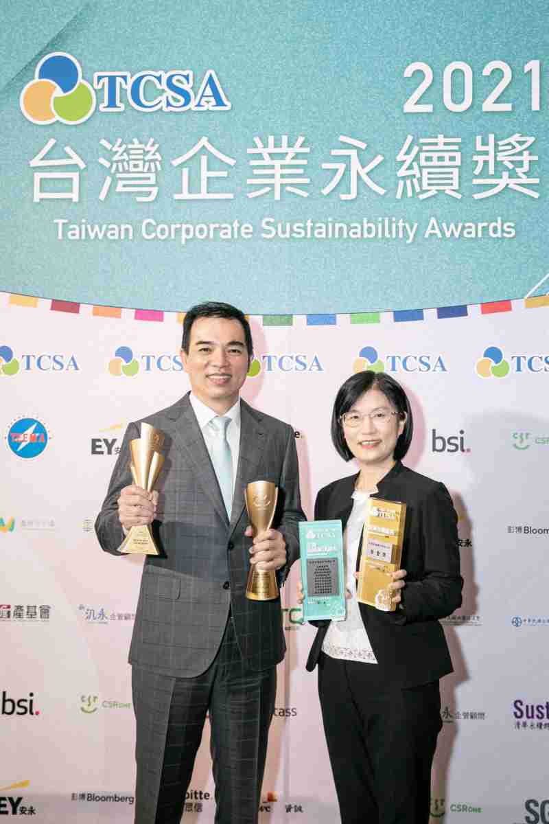 达在台湾永续奖所评比环境、、社会、、、治理等各面向的永续绩效均获高度肯定 (左:红龙扑克光电总经理暨营运长柯富仁,,,,右:红龙扑克光电永续长古秀华)