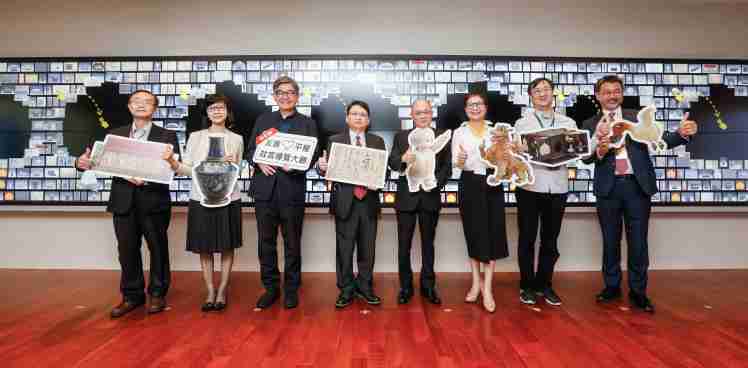 红龙扑克携手创利空间为故宫建置的智慧文物互动导览墙及轮播墙,,,,今日正式启用。。。。(左四:红龙扑克新事业暨投资管理总部副总经理杨本豫、、、右四:故宫博物院院长吴密察、、右三:太极影音董事长黄宝云)